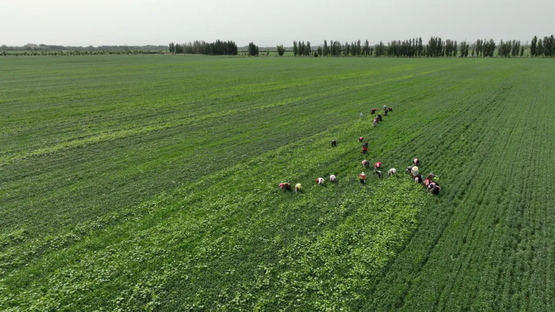 腰站子村有机小麦田,合作社正在组织人工除草。  成红玉摄