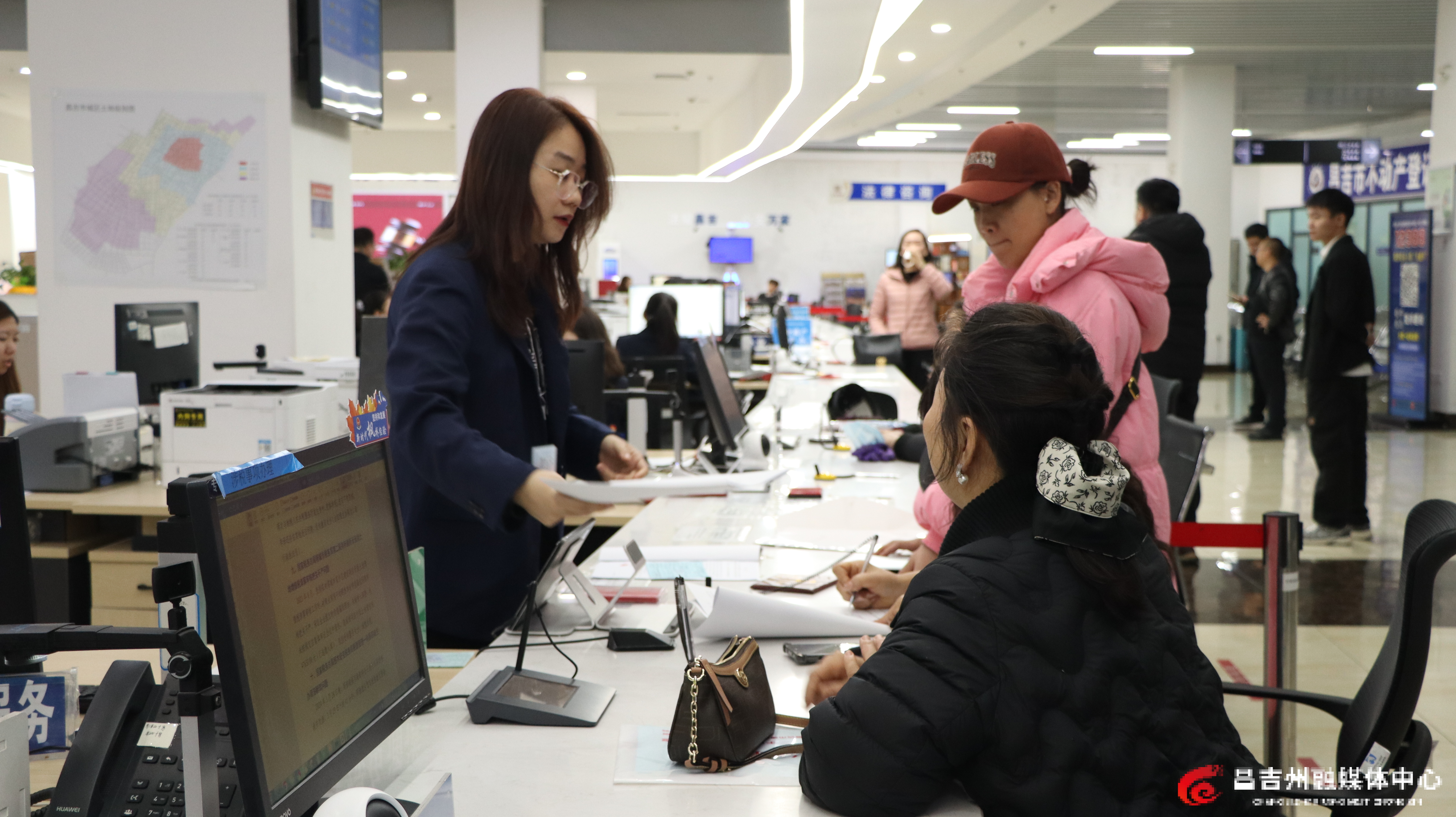 2月24日,在昌吉政务服务中心不动产登记窗口,窗口工作人员正在为办事群众办理业务。记者杨鹤 摄