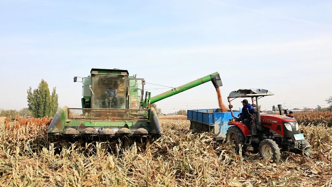 近日,在三台镇羊圈台子村种植户王吉福家的高粱地,轰鸣声此起彼伏,大型收割机在田间来回穿梭,经过摘穗、脱粒、秸秆粉碎后,饱满的高粱粒源源不断地装入运输车,原本需要数十人忙碌半个月的地块,不到1周就完成收割,机械化作业让丰收更有效率。