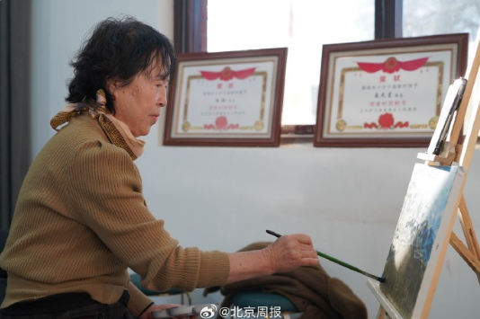 当地农民张新香已经学画三年,张新香告诉记者,“他们(艺术家)在村里,有时候我农闲的时候也很好奇,慢慢地开始学画,艺术家们也愿意指导。”