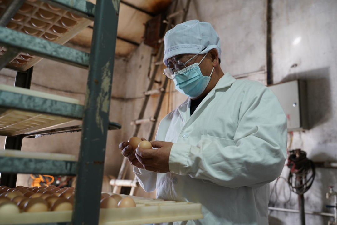 种鸡场技术人员正在检查种蛋外观。李逸凡摄