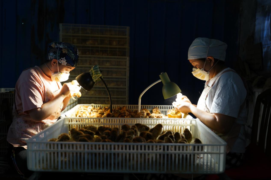 工人正在分拣鸡苗。李逸凡 摄