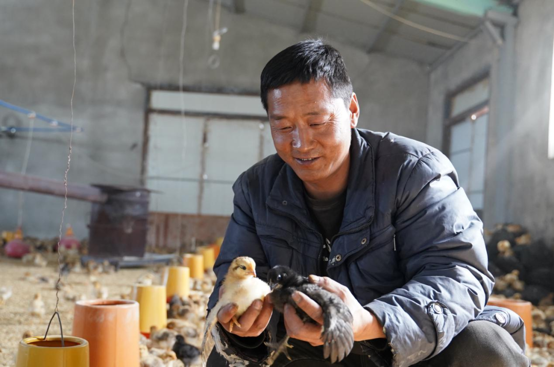 姚德红查看小鸡生长情况。李逸凡摄