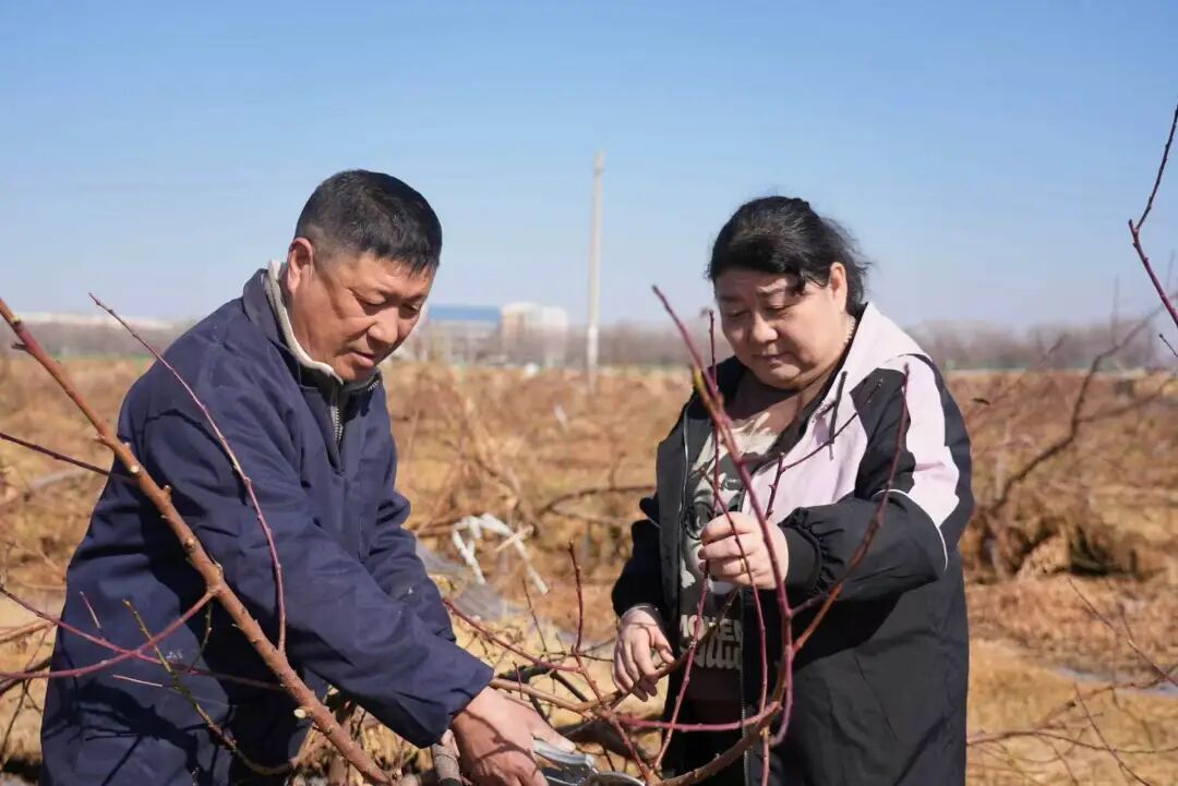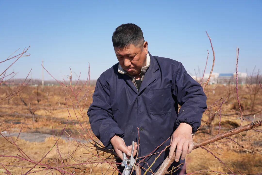 阜康市城关镇良繁中心村繁盛家庭农场负责人许军建说:“我们这片桃园有400多亩,趁着天气晴好,特意组织工人集中揭草帘、修剪、清园,再施一遍萌芽肥、浇透返青水,让桃树枝条长得壮实,今年才能多结果、结好果。全程有农技人员指导,我们干活更有方向、心里也更有底。”