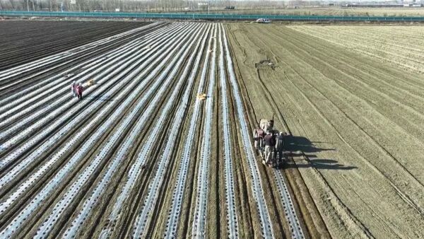 兰州湾镇金土豆产供销专业合作社负责人陈万虎说:“现在我们全程采用机械打孔、机械铺膜作业,大幅提升了种植效率,实现节本增效,计划在4月5号全面结束。”