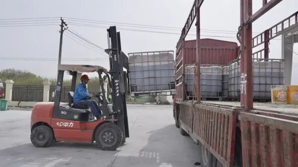 新疆慧尔农业集团股份有限公司玛纳斯区域经理聂俊佳说:“这个就是我们给用户配肥料用的吨桶,就是通过它装载到我们配送车上配送到农户的田间地头,到了田间地头,我们的用户会根据我们这个合格证上面的标注,来验收给他配的肥料到底是不是这个肥料,而且下面我们会有一个二维码,手机扫码即可查看产品名称、养分含量、生产厂家、施用方法及安全注意事项。”
