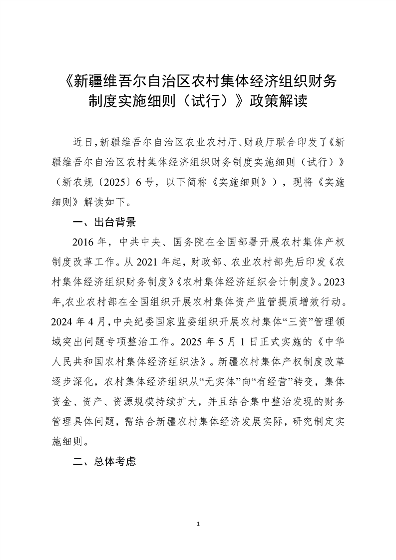 新疆维吾尔自治区农村集体经济组织财务制度实施细则政策解读