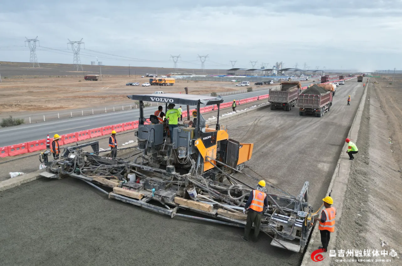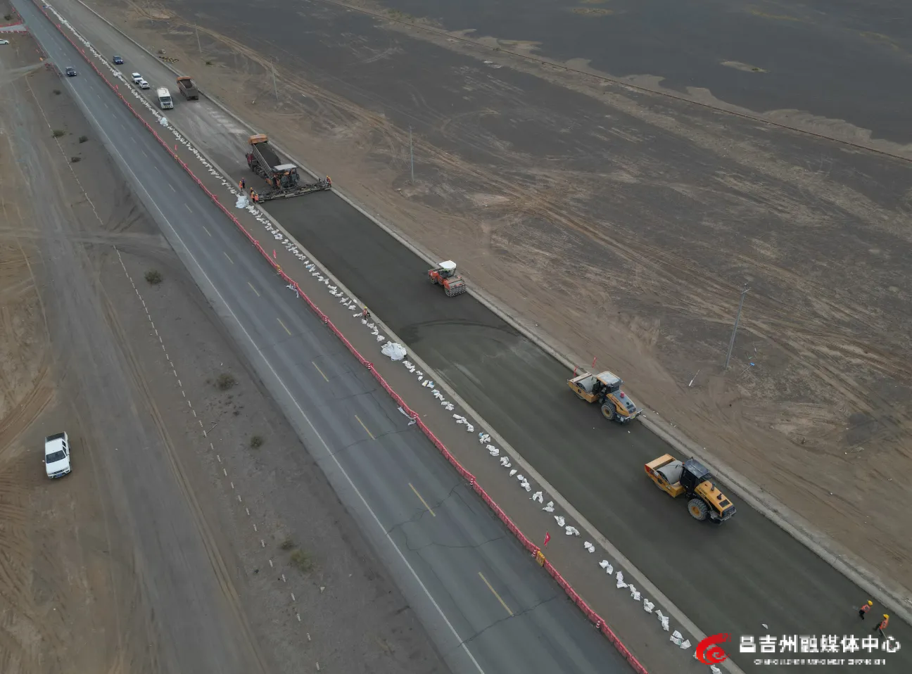 丝路昌吉/昌吉州融媒体中心讯(实习记者 田向一报道)8月1日,记者在新疆准东经济技术开发区(以下简称准东开发区)S240线大井服务区至奇台公路改扩建项目施工现场看到,工人们正紧张施工,现场一派热火朝天的景象。