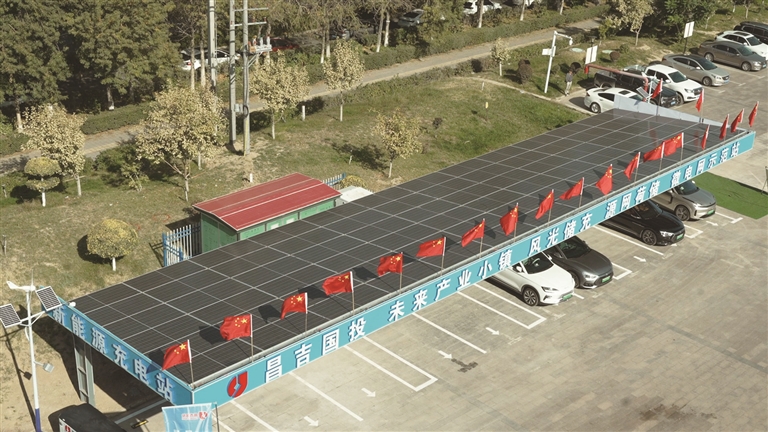 该项目由昌吉州国有资产投资经营集团有限公司投资220万元建设,站内配备光伏车棚、风力发电系统、储能设备及智能调度系统,可同时为10辆新能源汽车提供快充服务。