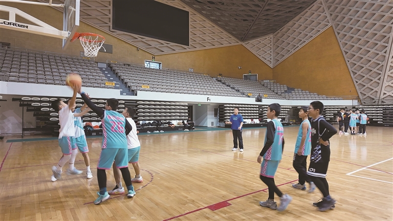 昌吉体育馆内呈现出一片火热景象:羽毛球爱好者在网前敏捷穿梭、你来我往,尽显运动风采;花式跳绳、组合跳绳轮番上演,灵动的身影洋溢着青春活力;篮球场上,球员跳跃、传球、投篮,每一次精准出手都凝聚着对运动的热爱。和同学一起打篮球的中学生李承骏对笔者说:“打篮球不仅能锻炼身体,还能结交到更多的朋友,我觉得这样的生活过得十分充实。”