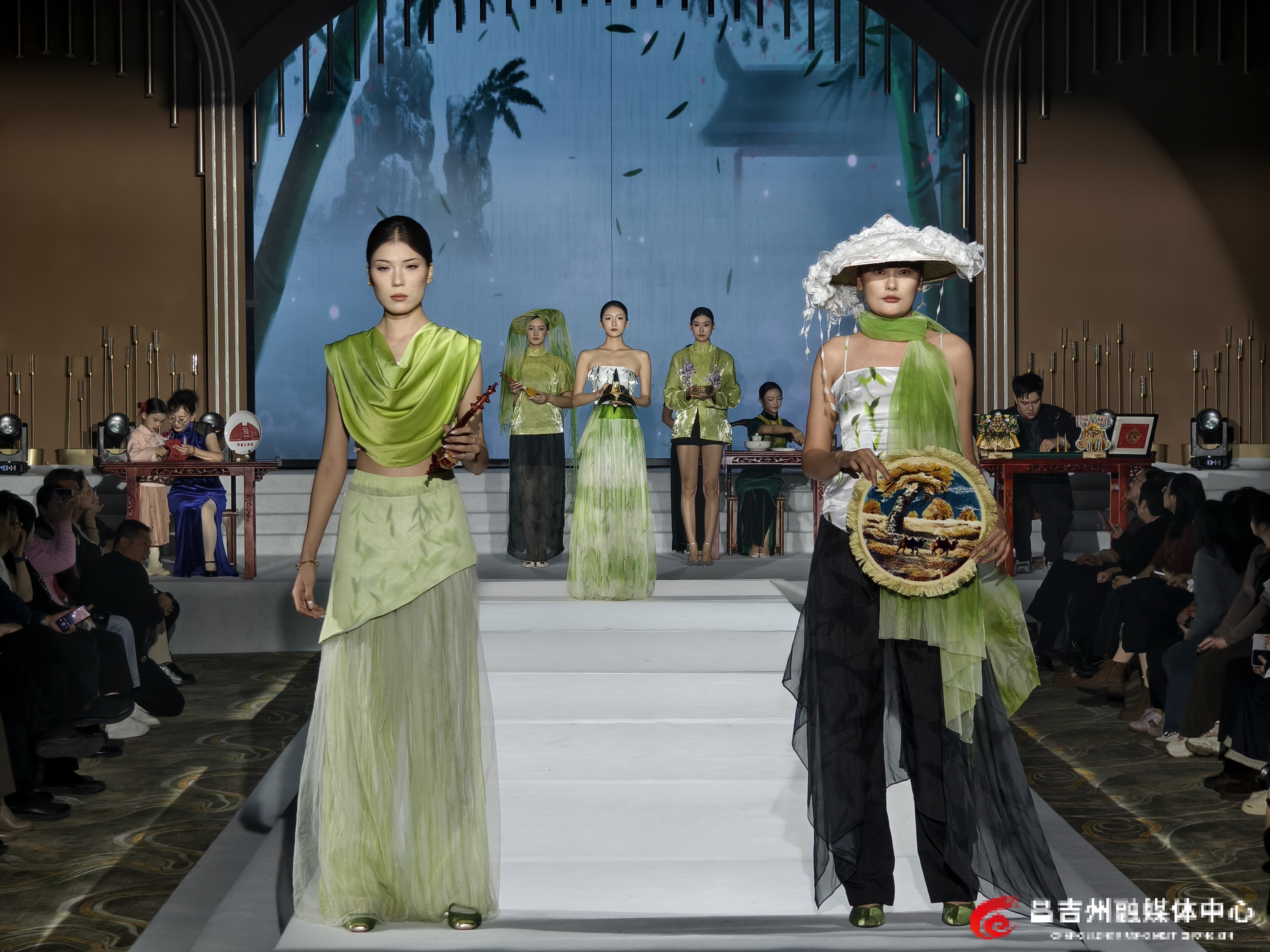 整场活动分“丝路锦韵·刺桐流芳”“霓裳华彩·南音北舞”“匠心传艺·指尖生韵”三大篇章。泉州市提线木偶戏《狮舞闹春》拉开了此次非遗时尚秀活动的序幕,丝线翻飞间,雄狮腾跃、姿态灵动;闽南语歌曲《望春风》曲调婉转,满含闽南水乡的温婉柔情;茶艺表演《丝路茶香》尽显安溪铁观音的文化底蕴。