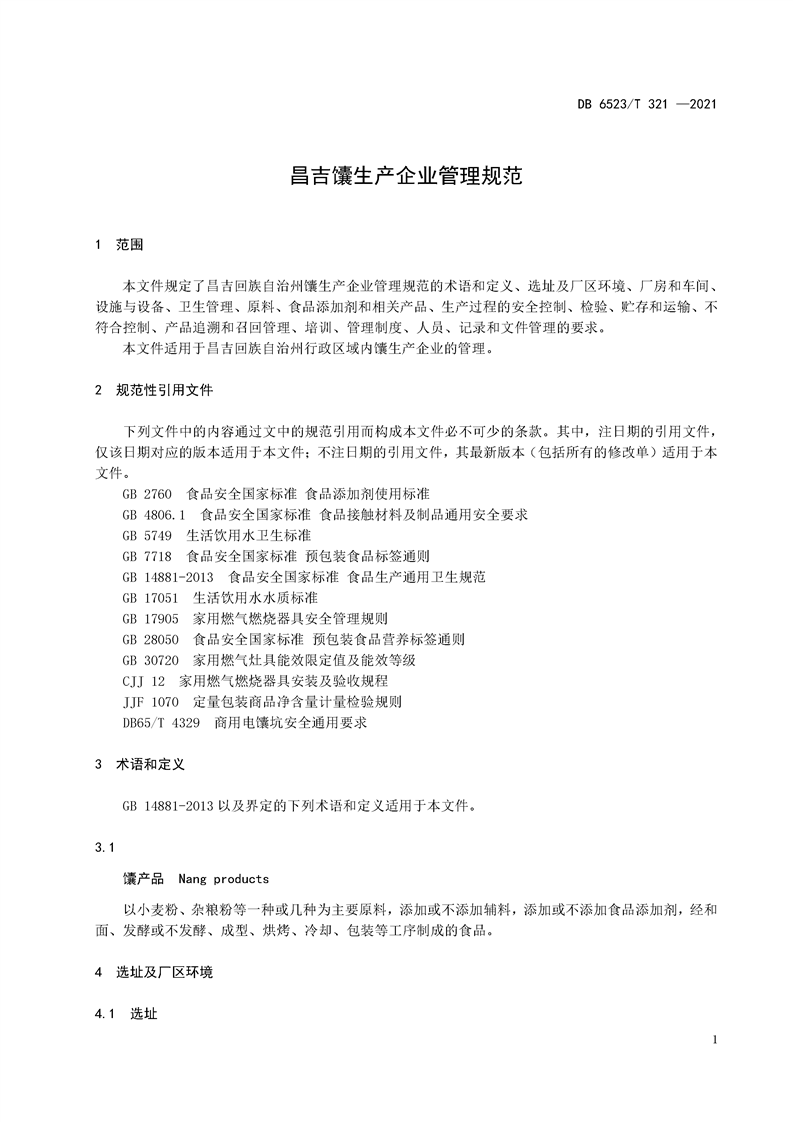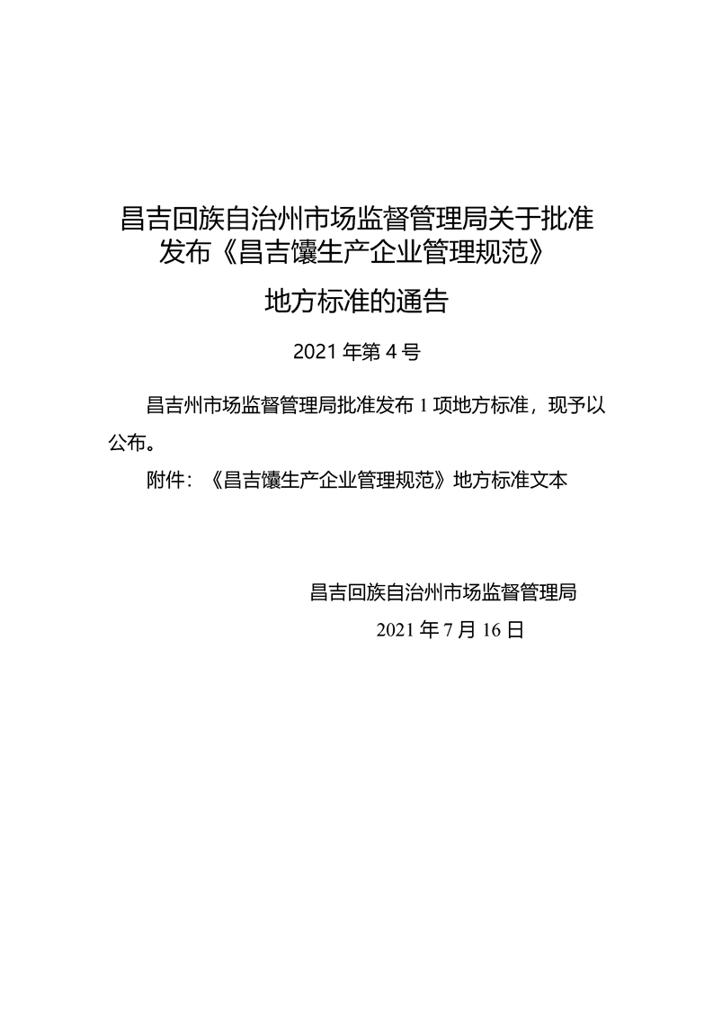 昌吉州市场监督管理局关于批准发布《昌吉馕生产企业管理规范》地方标准的通告