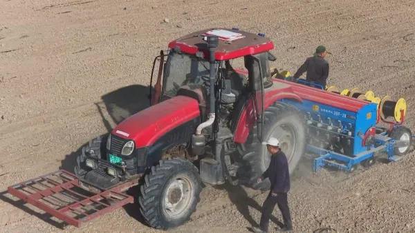 乐土驿镇冬小麦种植户李成山说:“今年种了340亩冬小麦,新式农机能一次性完成播种、施肥、铺滴灌带,北斗导航省心得很,比以前省了不少人力和费用!”