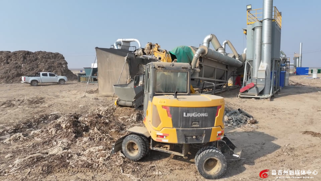 与此同时,从农田里回收的残膜正被源源不断送往昌吉国家农高区残膜回收企业进行加工处理。在惠疆环保科技(昌吉)有限公司,从田间地头回收的残膜经过除土、除渣、精选分离、打包等工序,残膜、渣土和秸秆就被精细分离,再生产的产品又按照类别,被赋予了新的用途。厂区生产负责人闫向东说:“回收的地膜我们会进行无水干式膜渣分选,残膜膜渣中的秸秆可以做成生物质颗粒,用于生产清洁燃料和木塑产品;渣土可以加工成花卉的肥料;残膜可以生产成再生塑料颗粒,用于生产木塑托盘、提炼聚丙烯油气产品等。”