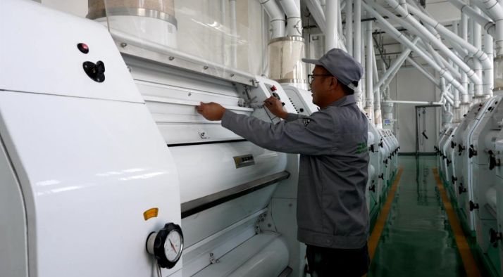 图为作为面粉加工厂的技术骨干,王生俊正在检查设备运行情况。苗立 摄
