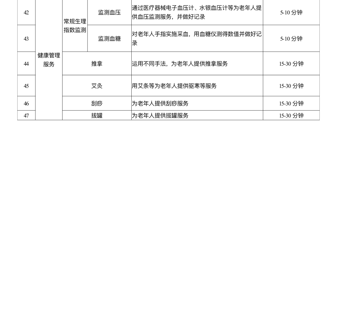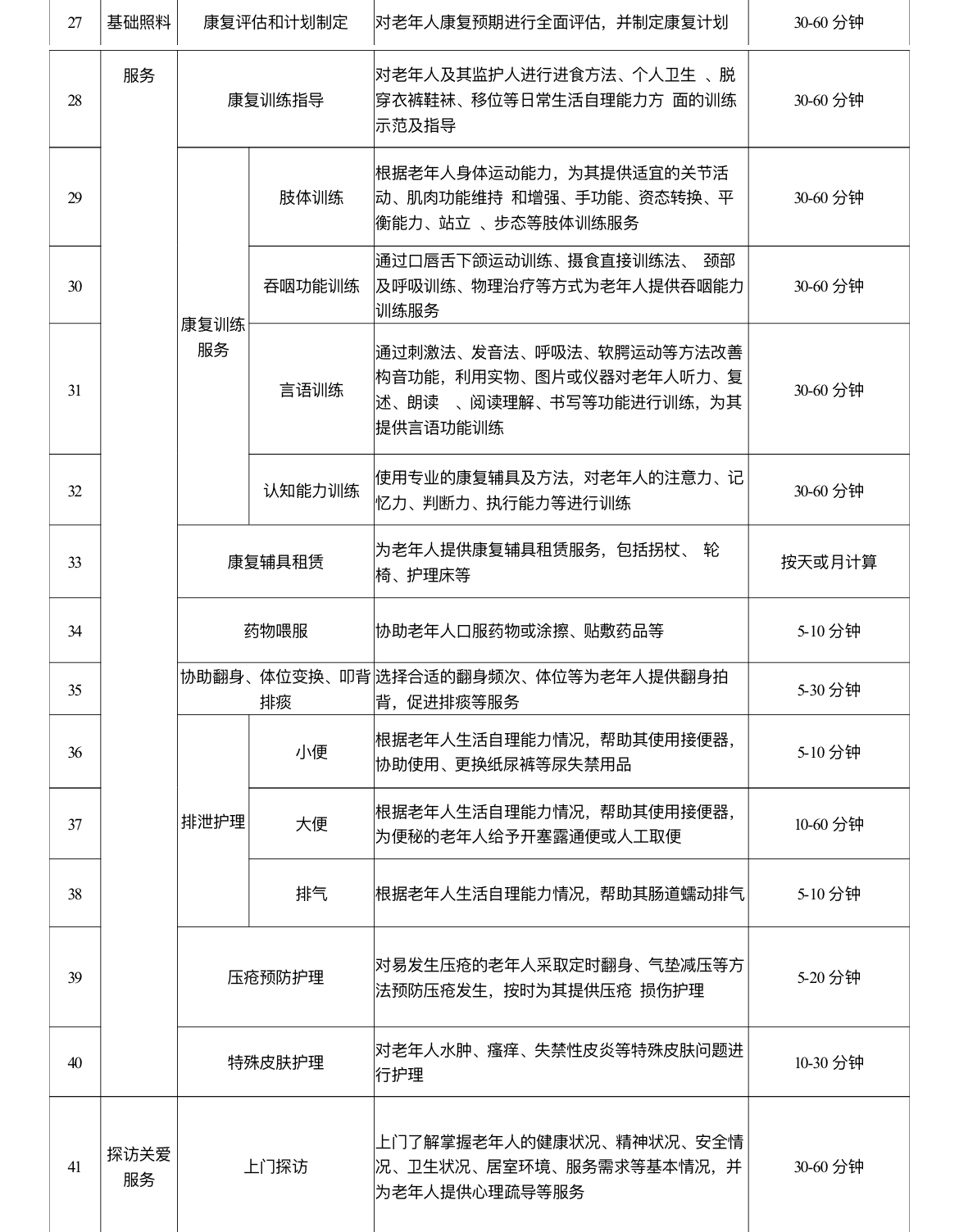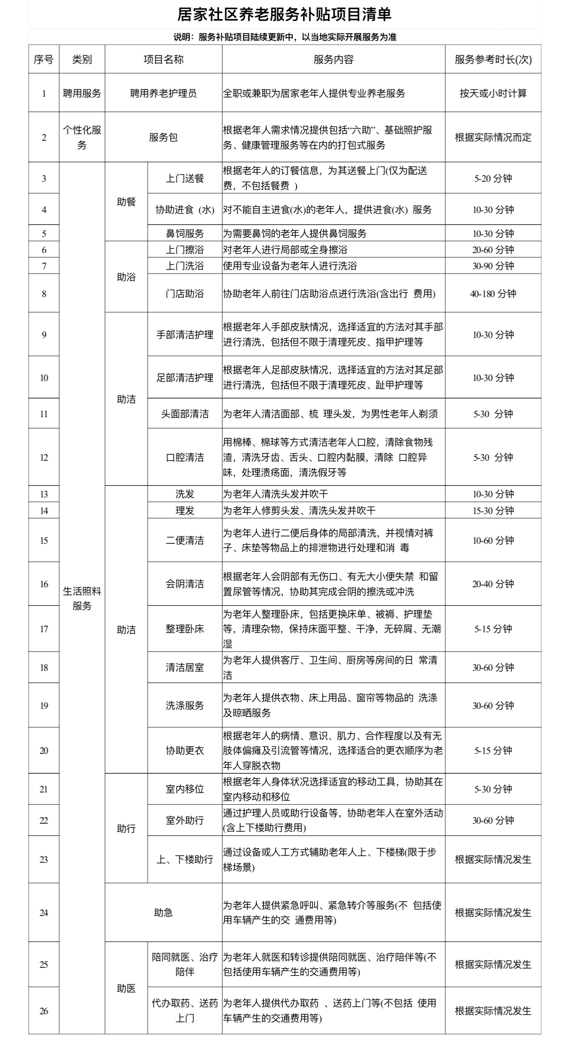 三是居家和社区养老服务:如助餐、助浴、助洁、助行、助医、康复护理等(具体以居家社区养老服务补贴项目清单为准)。