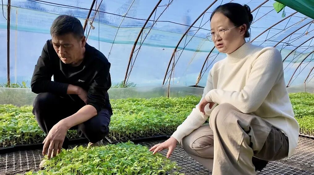 农技人员上门开展育苗指导服务。张新珍 摄