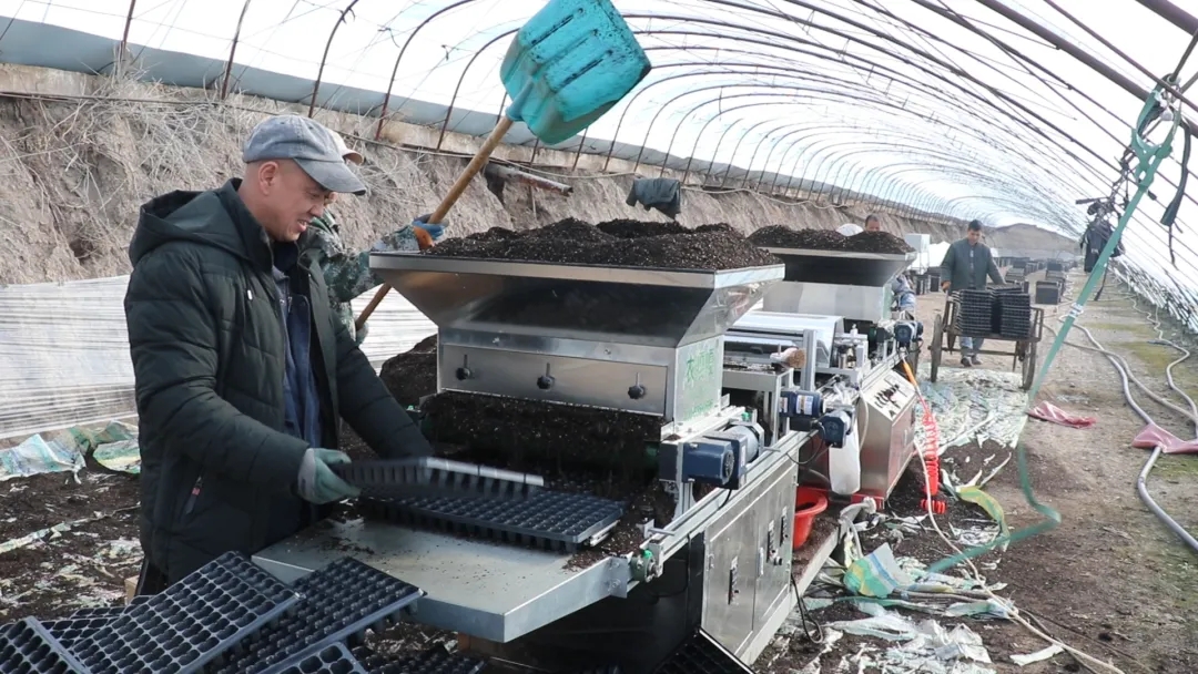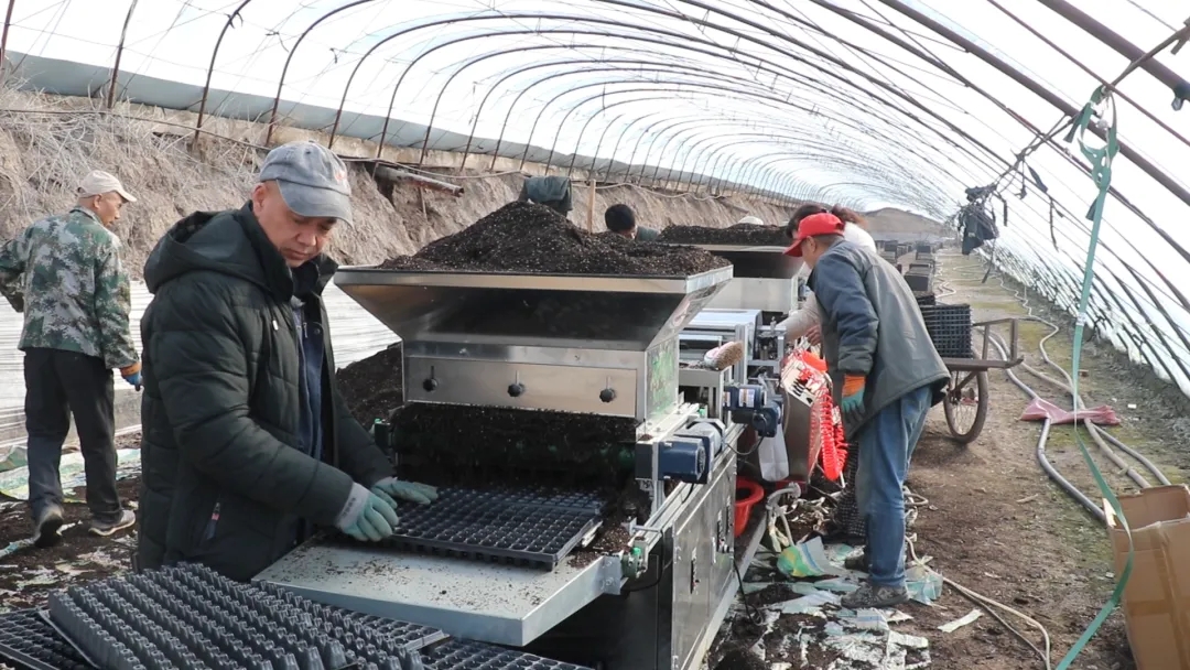 据了解,祥盛番茄种植合作社目前有90座温室大棚,采用机械点种与人工点种相结合的方式,加快育苗进度,确保按时供苗、不误农时。