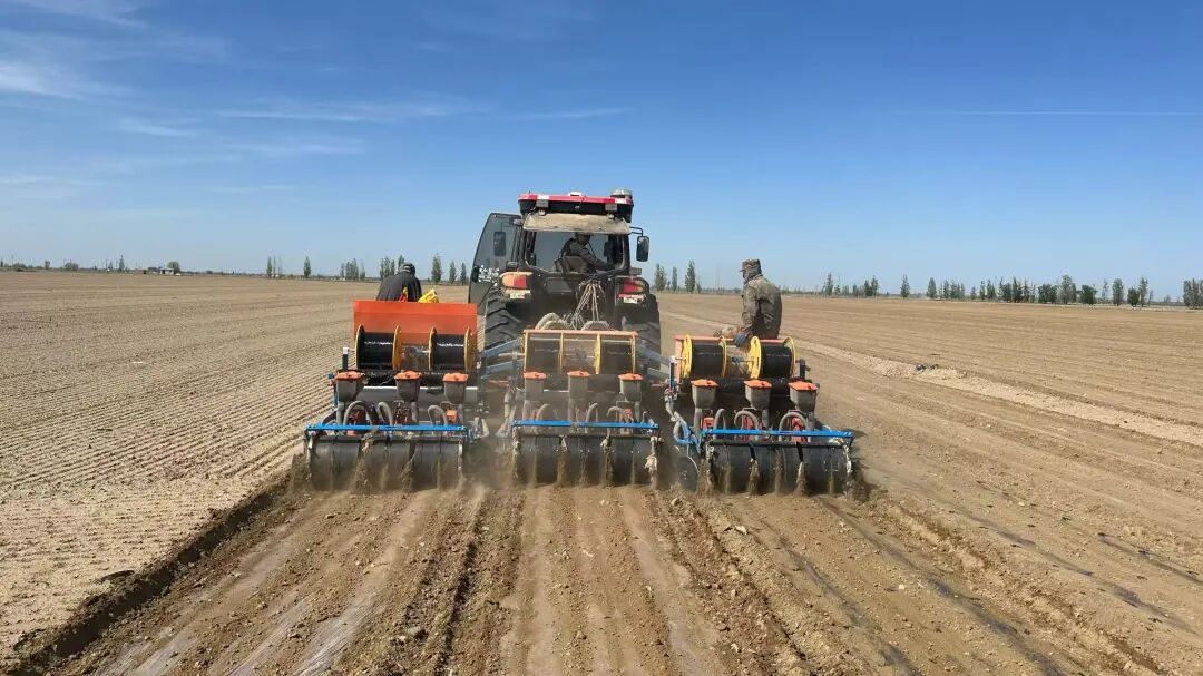 由北向南,奇台县春耕生产稳步推进。在西地镇东地村,种植户李志强的370亩玉米已顺利出苗。今年春耕期间,他通过推广应用宽窄行密植、北斗导航精准播种、智能施肥罐等新技术新装备,有效提升了播种质量与水肥管理效率。“过去用老式农机,这370亩玉米播种至少要忙一个星期,现在两台播种机两天就能干完。智能施肥罐搅拌均匀,使用方便,肥料利用率也更高。”李志强感慨道。