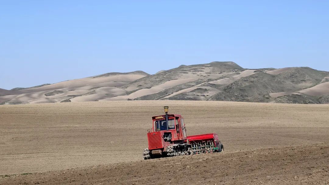 奇台江布拉克景区小麦播种从低海拔区向高海拔区逐步推进。安涛 摄