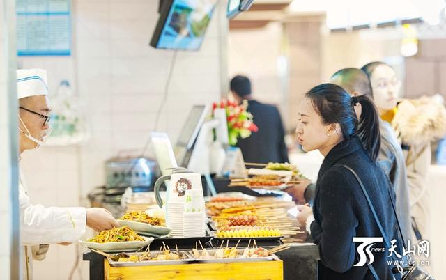 20时,位于昌吉市人民公园东北角的小吃街,灯火辉煌,游客流连忘返。