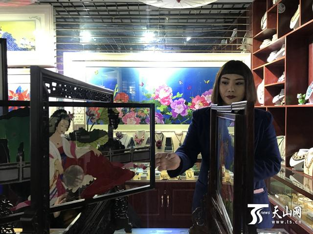 灏霖绣画布艺轩这几天生意格外好,晚上十一二点还在店里赶刺绣作品,“今天阿凡提的布艺卖了5幅,还接到一个小仕女布艺画订单,虽然现在是冬季,但生意一点也不淡。”灏霖绣画布艺轩老板何惠君说。
