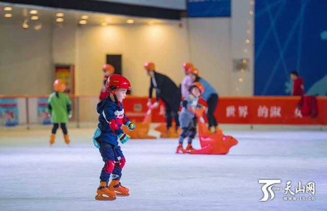 晚上,昌吉市小朋友在滑旱冰。