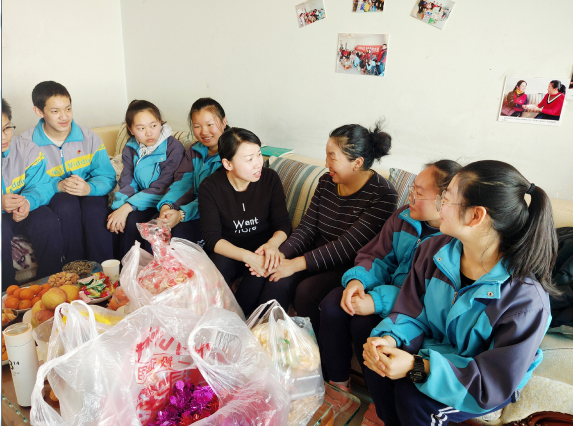 与此同时,由昌吉州第一中学初三年级各班组成的志愿者小团队也来到了昌吉市延安北路街道园丁社区居民、“爱心妈妈”吴桂莲的家中,为吴妈妈送去了新春的祝福,还为吴妈妈悬挂了春联、窗花等。初三十班学生谢博润说:“通过此次社会实践,我们了解了吴妈妈所做的公益事业,听完她的讲述我们深受感动。我也会将这份爱心继续传递,让更多青少年投身公益事业。”
