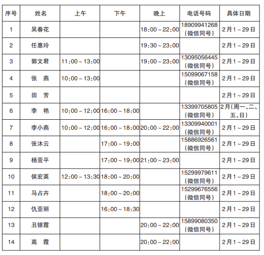 新冠肺炎疫情防控期间庭州心灵之约志愿者时间安排及联系方式