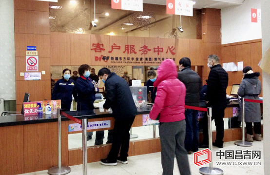 在东方环宇燃气客服部广场营业厅,市民排队缴费。昌吉日报记者 王薇 摄