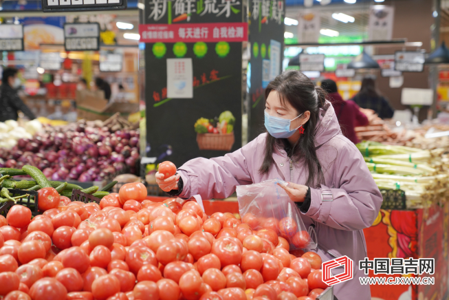 在昌吉市延安北路汇嘉时代购物广场超市,市民在挑选蔬菜。昌吉日报记者 李思佳 摄