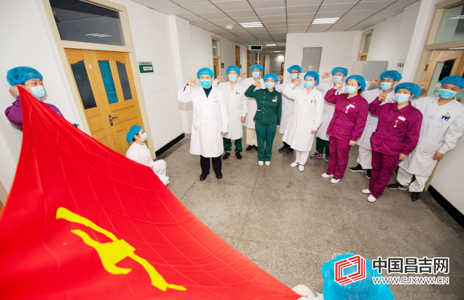 2月6日,州人民医院传染病分院,党员医护人员在党旗下宣誓。昌吉日报记者 何龙 摄