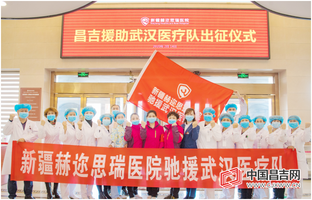 一方有难,八方支援。2月14日,在位于昌吉市青年路的新疆赫迩思瑞医院,一场简短而隆重的出征仪式后,滕燕玲、索莹、杨军芳3位医护人员整装出发、准备驰援武汉市第十一医院。2月20日,3人到达武汉,当晚医疗队接到医院紧急通知,立即投入参与护理工作。