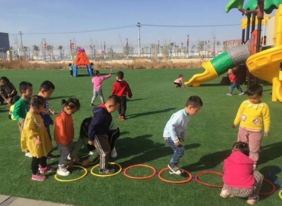 位于准东开发区的吉木萨尔县第七幼儿园的孩子们在操场上做游戏。昌吉日报记者 王新斌 摄