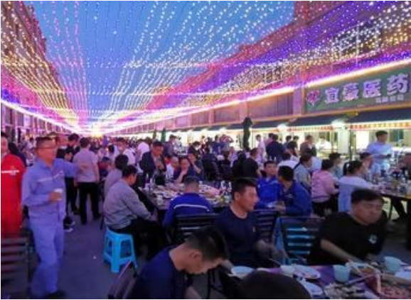 5月28日傍晚,准东夜市开市,吸引了方圆数十公里的百余家企业近4000多名职工光顾,400余张餐桌座无虚席。平时寂静的五彩湾新城瞬间热闹起来了。国神集团五彩湾发电有限公司员工李兵深有感触地说:“现在准东的交通四通八达,单位距五彩湾新城准东夜市约20公里,开车一溜烟儿的功夫就到了,方便得很。”