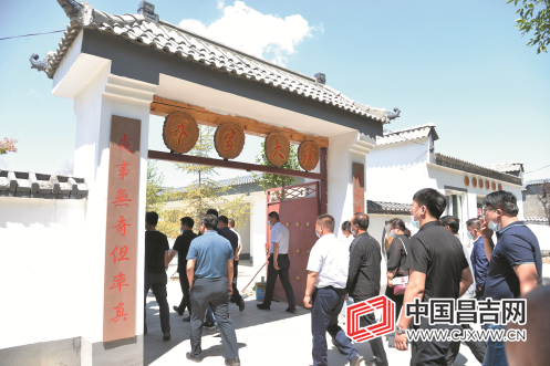 6月7日,自治州“三位一体”工作观摩会参会人员参观玛纳斯县兰州湾镇八家户村乔家大院。