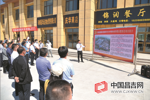 6月7日,玛纳斯县包家店镇党委副书记马欢在自治州“三位一体”工作观摩会上介绍冬麦地村壮大村集体经济综合服务区项目。
