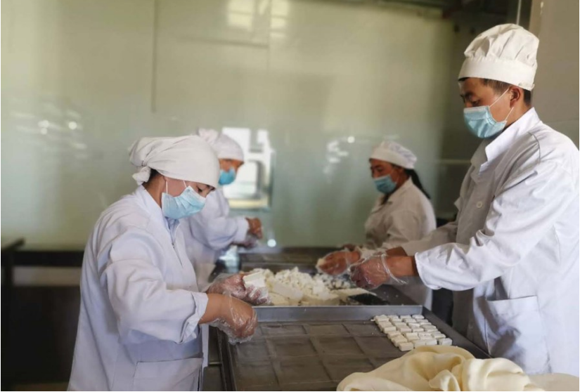 走进木垒县大南沟乌孜别克族乡阿克喀巴克村宝增甘乳制品公司生产车间,工人们正熟练地将经过杀菌、脱脂、烘干的奶制品装进包装袋称重密封。