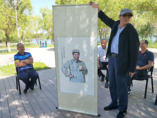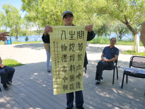 原州政府办公室副县级调研员谢建新同志展示手写篆字和书画。