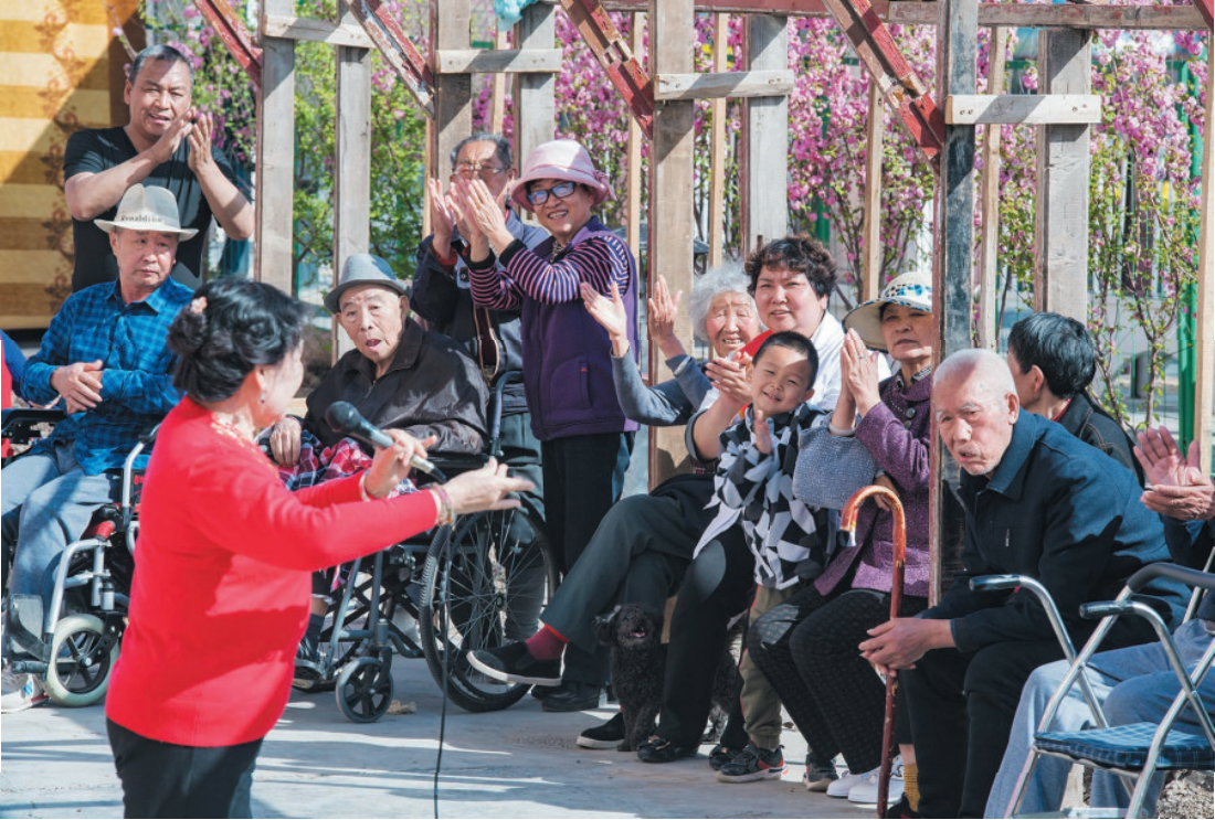 昌吉市北京南路街道敬老院,老人们在观看文艺节目。