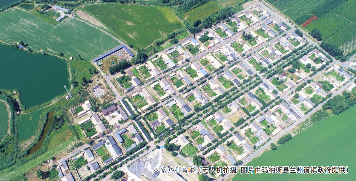 八家户村鸟瞰。(无人机拍摄 图片由玛纳斯县兰州湾镇政府提供)