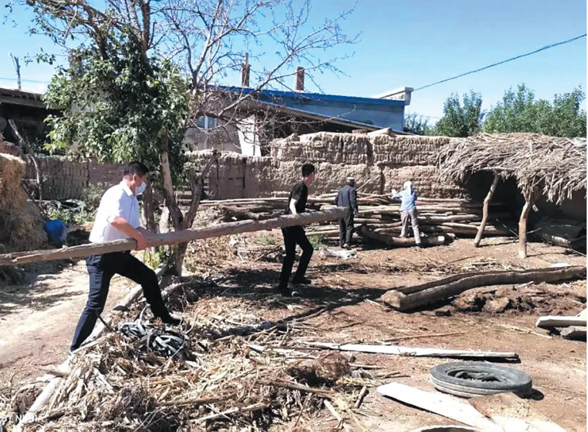在结亲户哈布德热克家中,州财政局的结亲干部帮助哈布德热克老人打扫庭院和室内卫生,还帮助老人清洗了床单、被套等。在生活困难村民赛依提尼家,结亲干部帮助他清除了地里的杂草,清理了庭院的杂物。