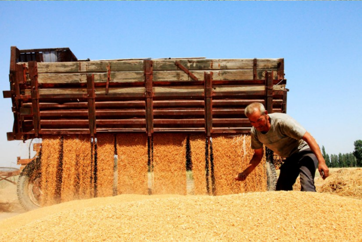 近日,昌吉市近13万亩小麦开镰收割。梁宏涛 摄