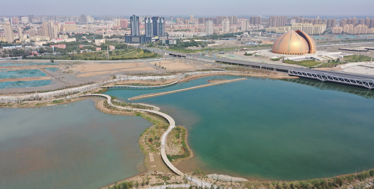 昌吉市头屯河沿岸综合整治工程是昌吉市环保优先、生态立市的重点工程,项目总投资38.17亿元,该工程围绕新疆大剧院打造以文化公园湖水系为主的蓝色带和以绿色景观植被为主的绿色带,从南到北依次打造自然生态修复公园、城市康体运动公园、庆典公园、工业遗址公园、文化公园五大主题公园。目前,各大主题公园正在抓紧建设,已陆续完成人工湖水系建设,附属构筑物及建筑物主体施工、装饰装修等工作正在有序推进。