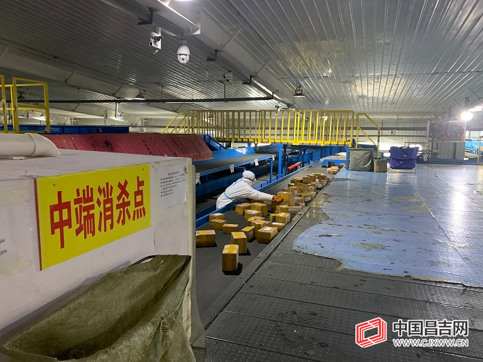 记者在位于昌吉市三工镇的中通快递新疆分公司看到,工作人员身穿防护装备对快件进行有序消毒杀菌、分拣。孙利民介绍说:“我们配备有专门的消毒杀菌和采样团队,从运送包裹的车辆到包裹分拨分拣,再到装车转运,进行全流程多次消毒杀菌。”