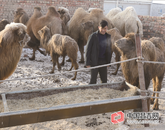临近中午,阳光透过薄雾照在厚厚的积雪上,奇台县半截沟镇石河子村村民艾尔布力·胡尼亚孜家的农家院里,一峰峰骆驼悠闲地啃食着饲草料,时不时抬起头看看记者一行人。
