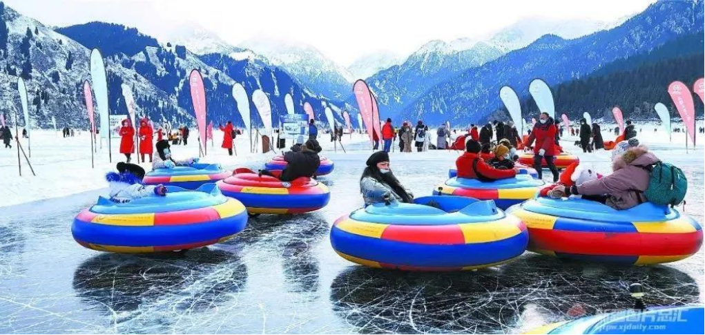 传统的扭秧歌、极具新疆特色的歌舞表演、冰上龙舟等文旅项目与美丽的天山天池,让游客在赏景、玩雪、品民俗中热热闹闹过大年。
