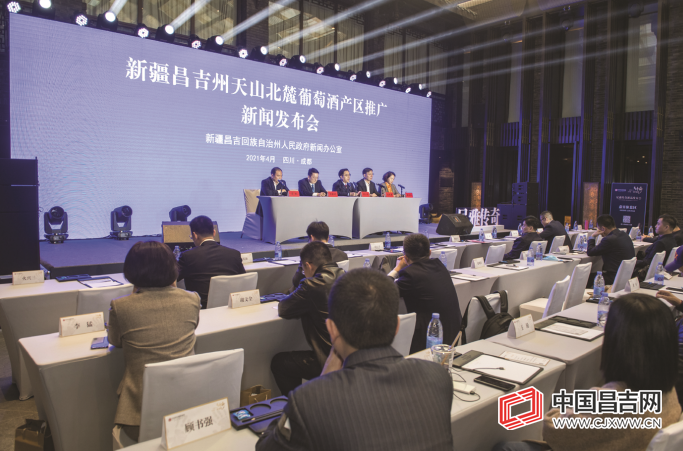 4月7日下午,自治州天山北麓葡萄酒产区推广新闻发布会在成都市举行。 记者 何龙 摄