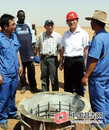 特变电工进出口公司党总支书记、总经理李边区(右二)在苏丹项目施工现场严格检查施工质量。