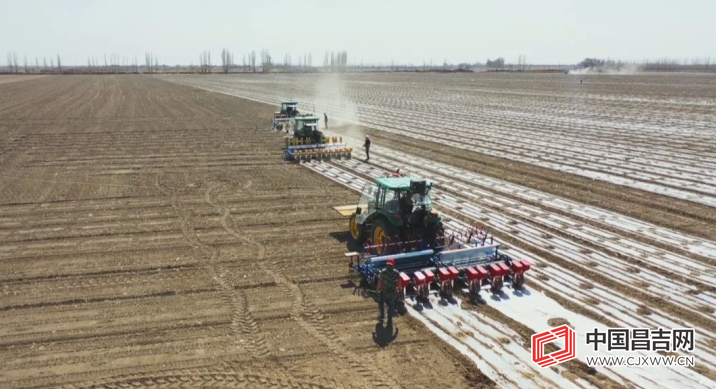 玛纳斯县北五岔镇副镇长王伟说:“我镇组织了480台播种机械全面开始作业,技术员分组下派到各村,指导农民春耕生产工作,预计全镇15.8万亩播种面积将在一周之内全面完成。”